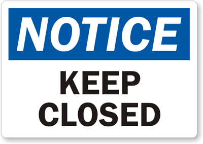 OSHA Notice Label: Keep Closed L-0132-XV
