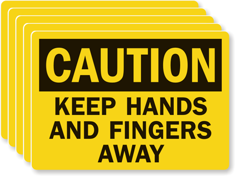3.5in. x 5in. Laminated Vinyl Labels: OSHA Caution - Keep Hands And Fingers Away L-0120-VS