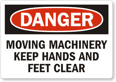 OSHA Danger Label: Moving Machinery Keep Hands and Feet Clear L-0089-XV