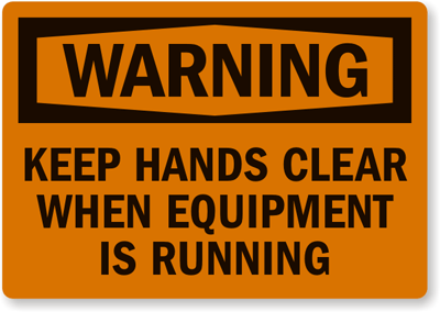 OSHA Warning Label : Keep Hands Clear When Equipment Is Running L-0106-XV