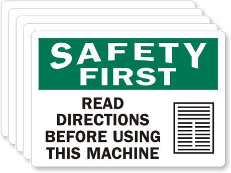 3.5in. x 5in. Laminated Vinyl Labels (Pack of 5): OSHA Safety First - Read Directions Before Using This Machine L-0135-VS