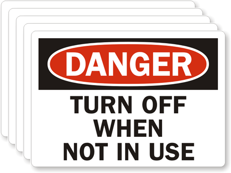 3.5in. x 5in. Laminated Vinyl 5 Labels/Pack: OSHA Danger - Turn Off When Not In Use L-0098-VS
