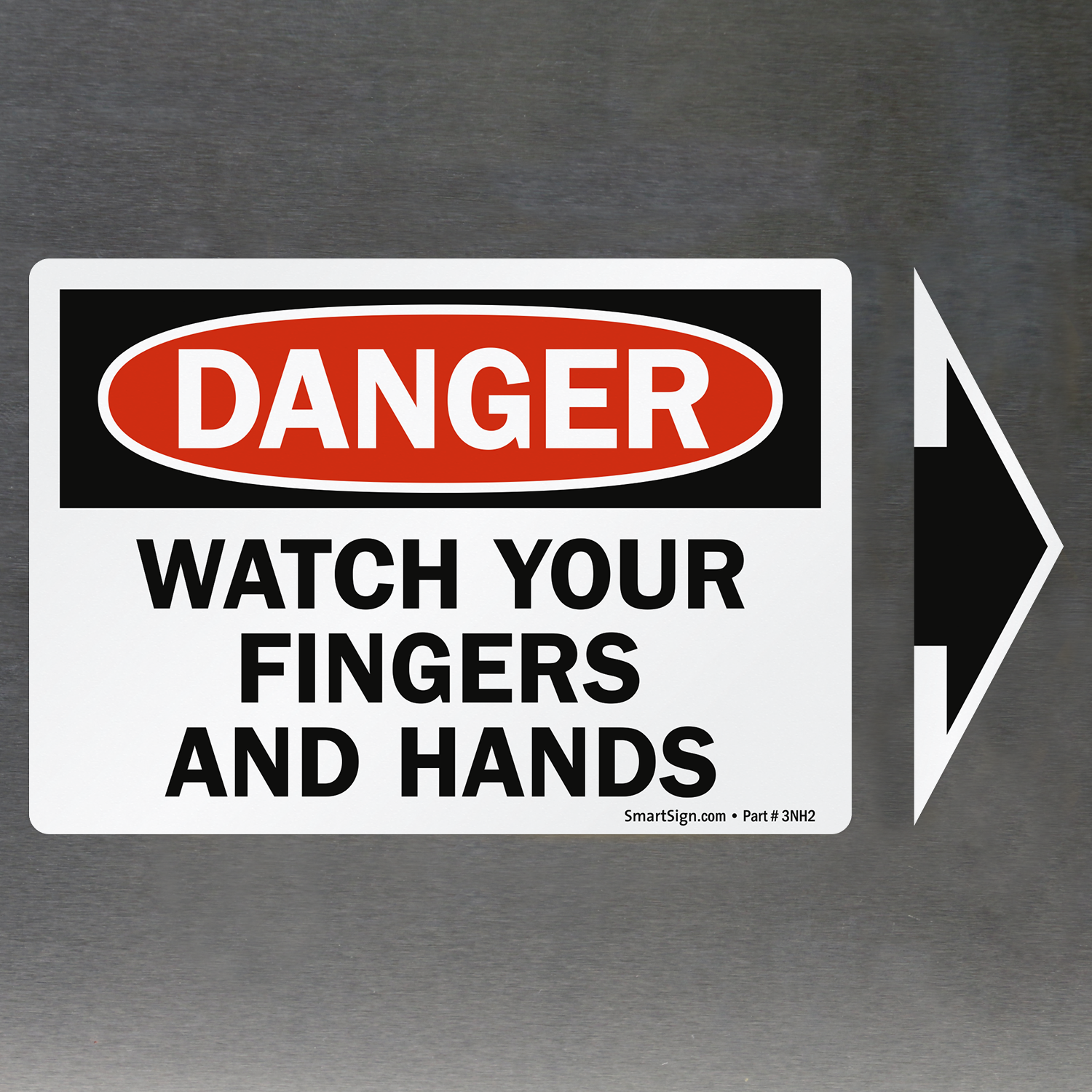 3.5in. x 5in. Laminated Vinyl Labels with Arrow: OSHA Danger - Watch Your Fingers And Hands (with Arrow) L-0150-VS