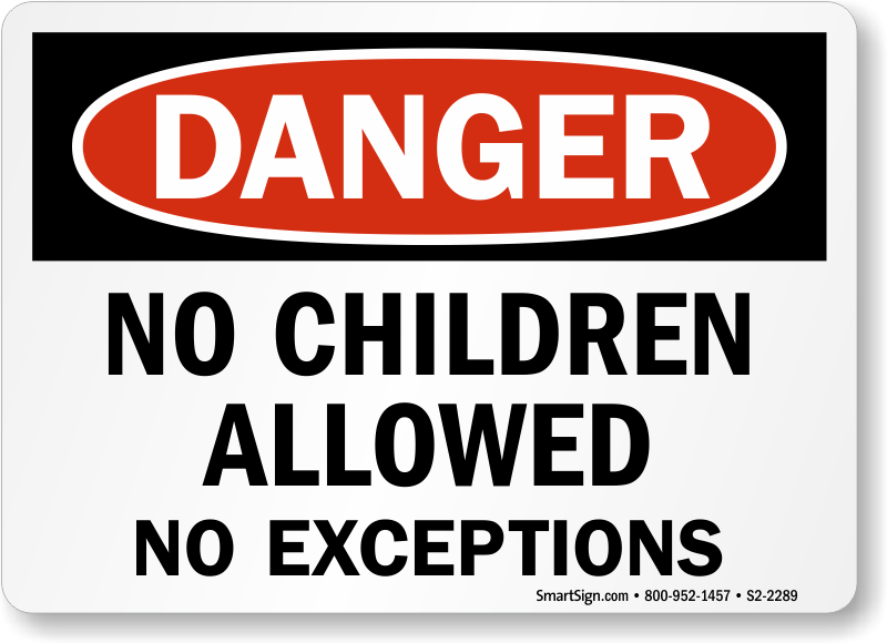 Unattended Children Sign: Danger - No Children Allowed, No Exceptions S2-2289