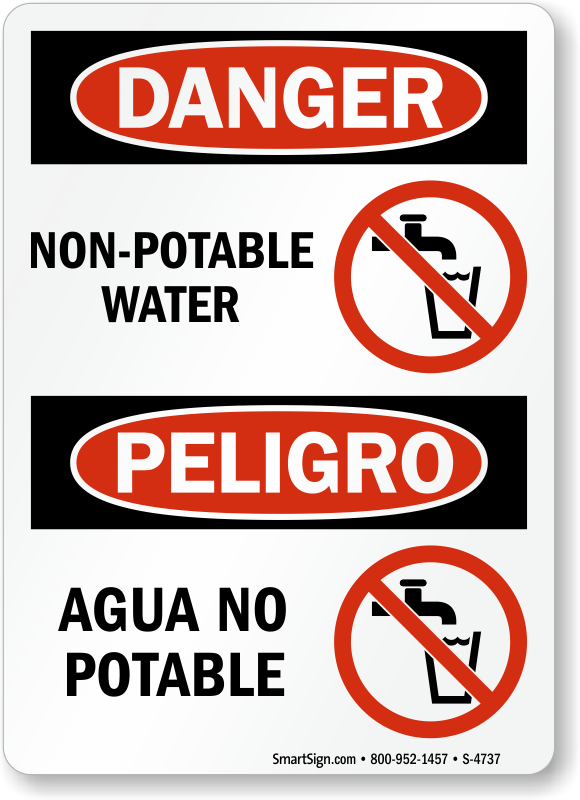 Post the sign where water is unfit for drinking so that no one consumes it. This Bilingual OSHA sign with a graphic says that the water is non-potable.