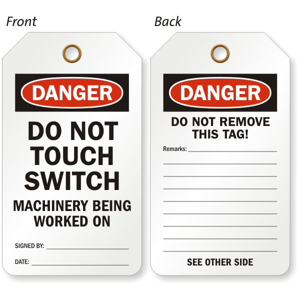 2-Sided OSHA Danger Safety Tag: Do Not Touch Switch Machinery Being Worked On Tag TG-0541