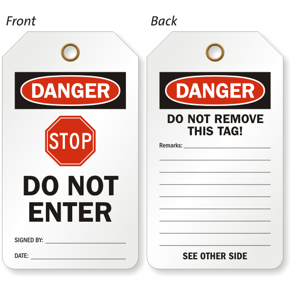 A universally recognized STOP symbol effectively conveys the message on this 2-Sided OSHA Danger Safety Tag.
