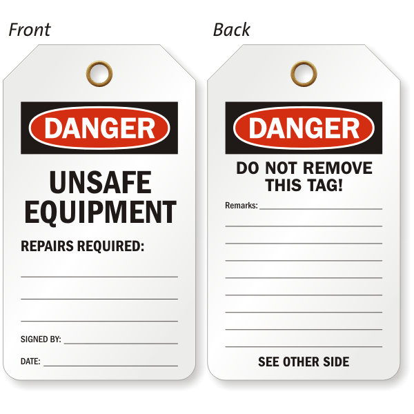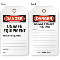 Write repair details or instructions on this Two Sided OSHA Danger Safety Tag receptive to pen or marker.