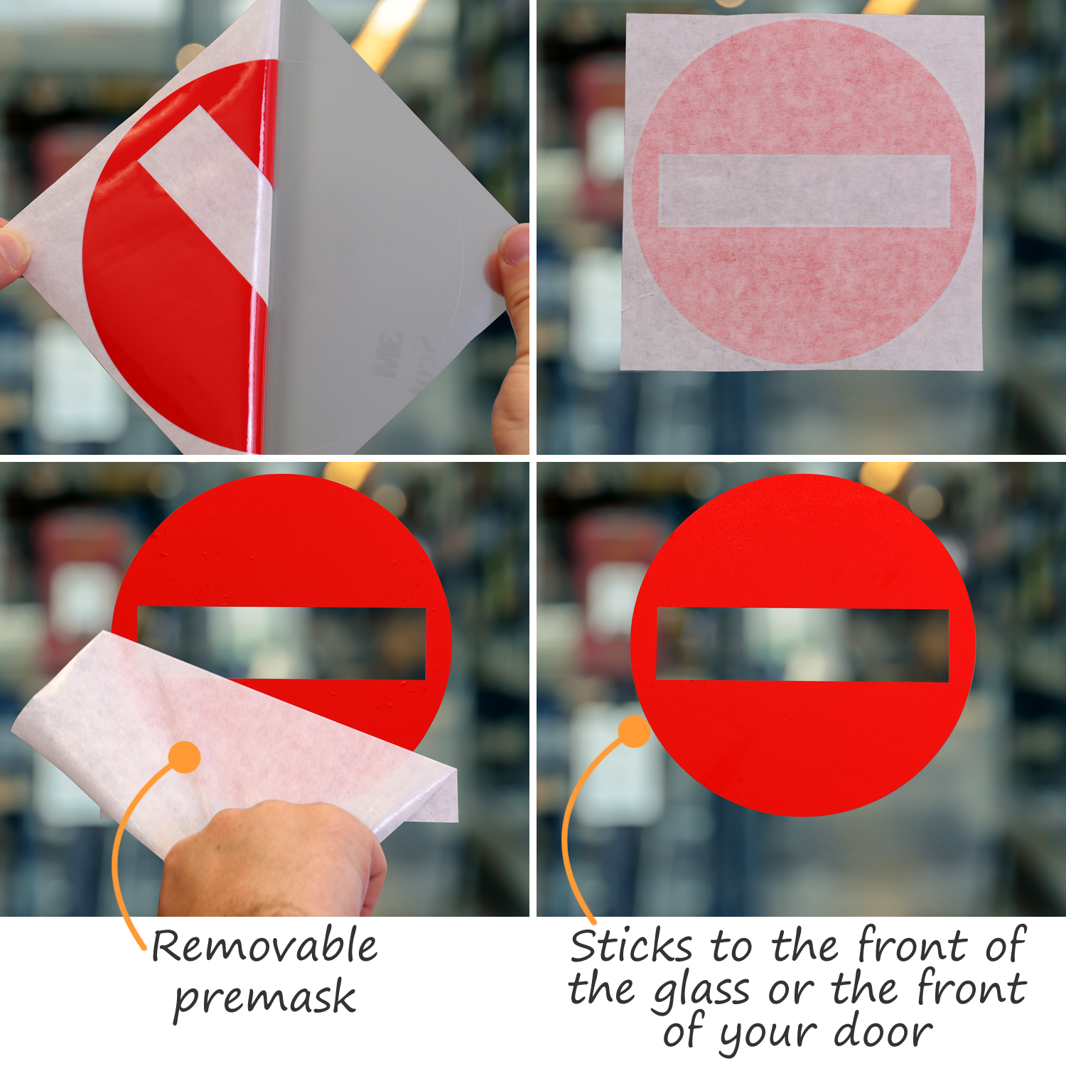 - Supplied with both front and back adhesive, decal can be stuck on both inside or outside of a glass door.