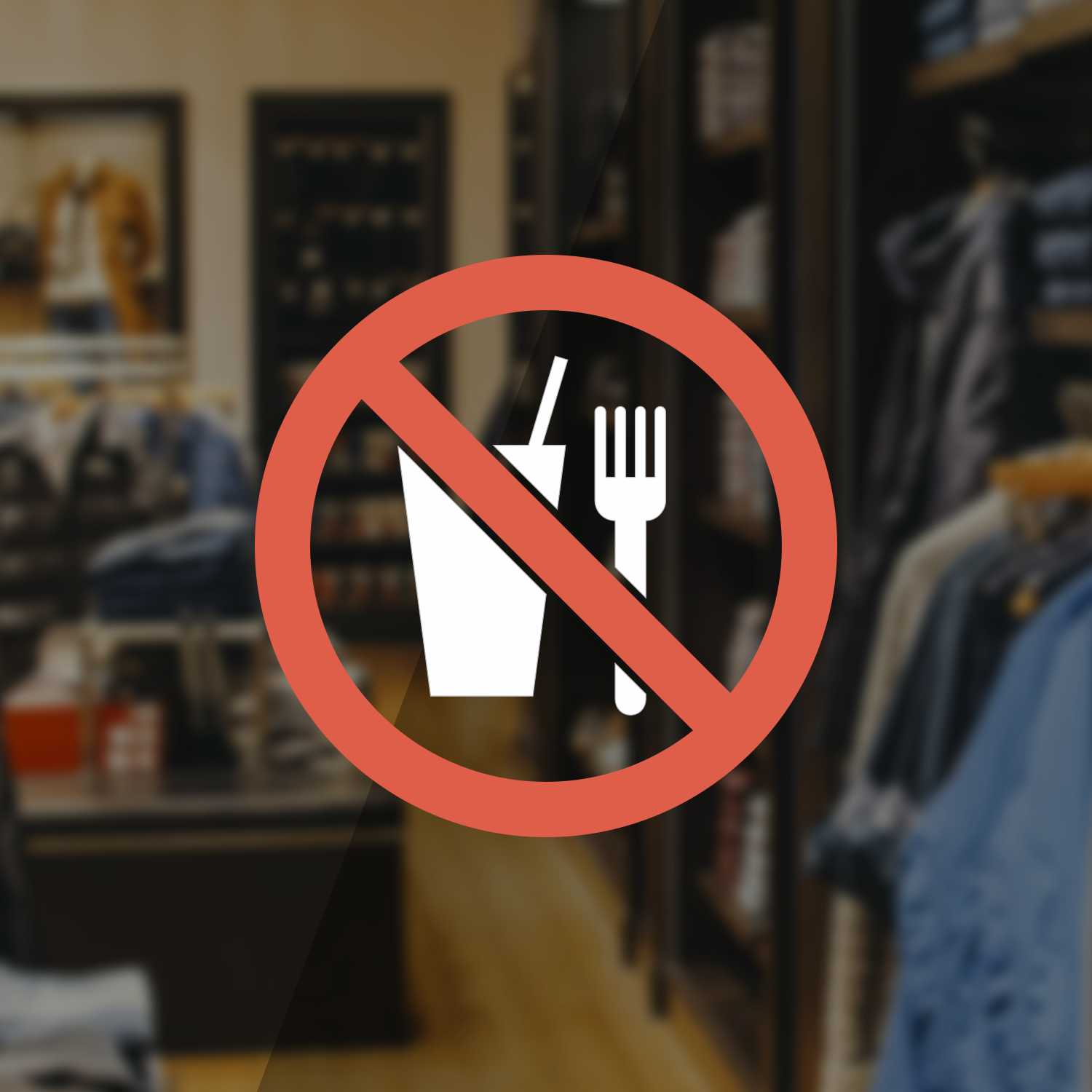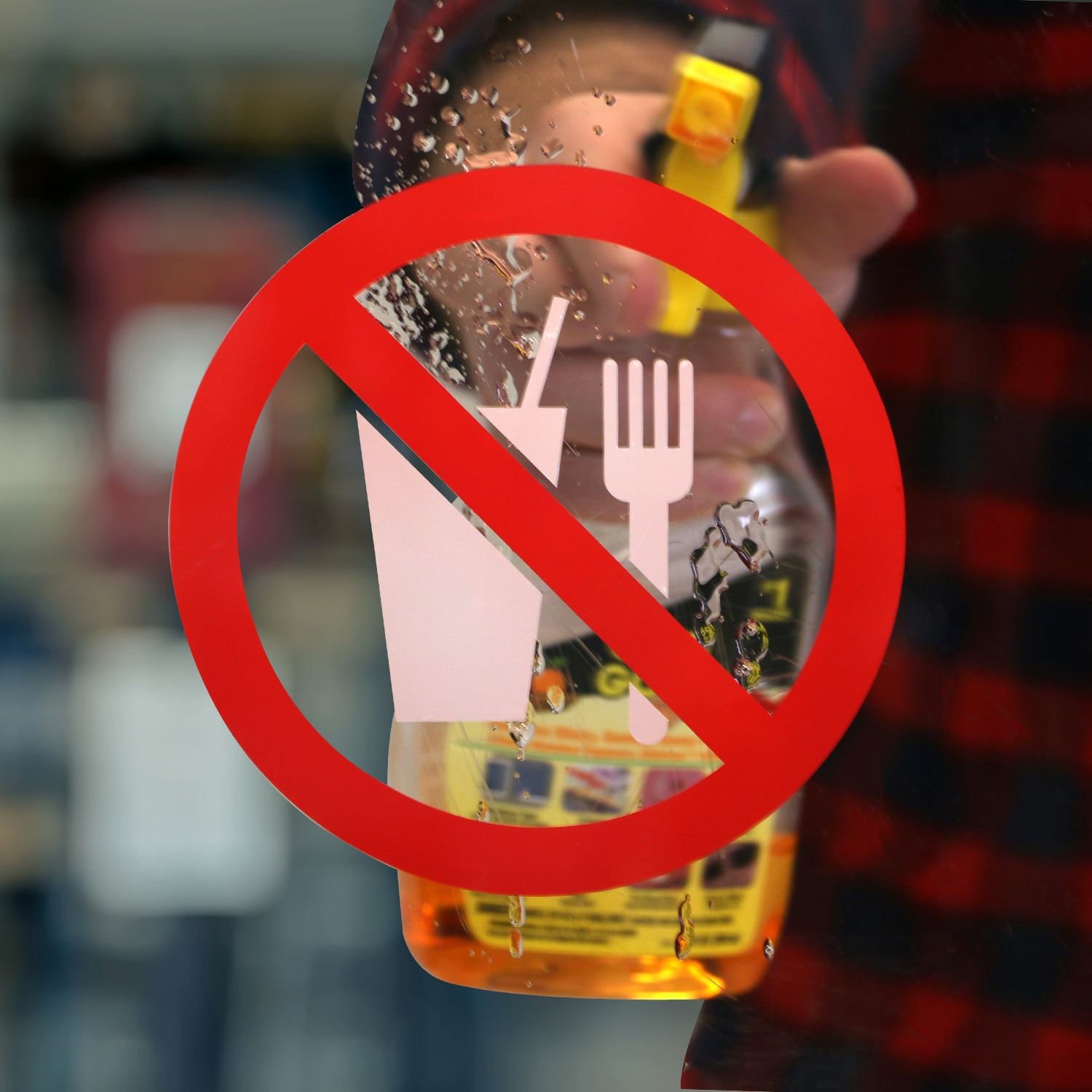 - No Food & Drink Symbol decal prohibits occupants from taking or consuming food or drink in specific areas of a building.
