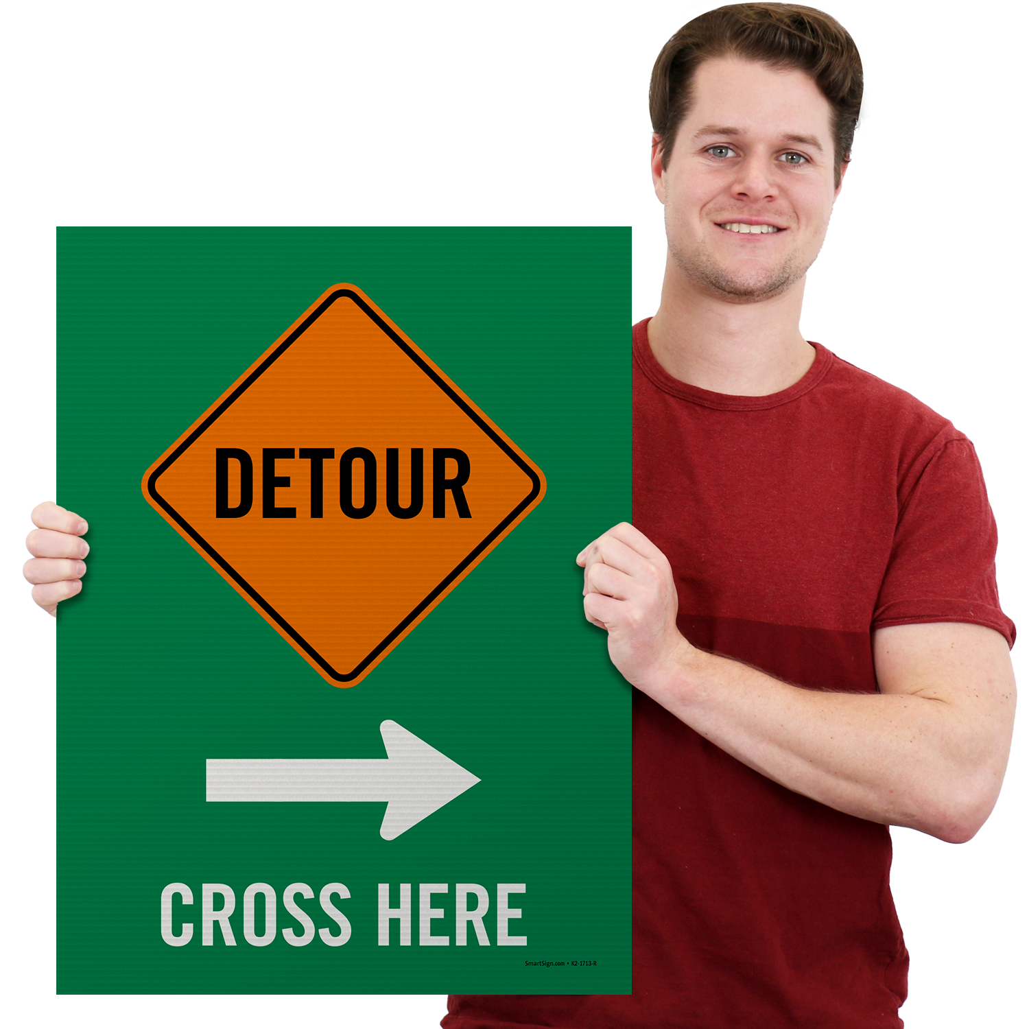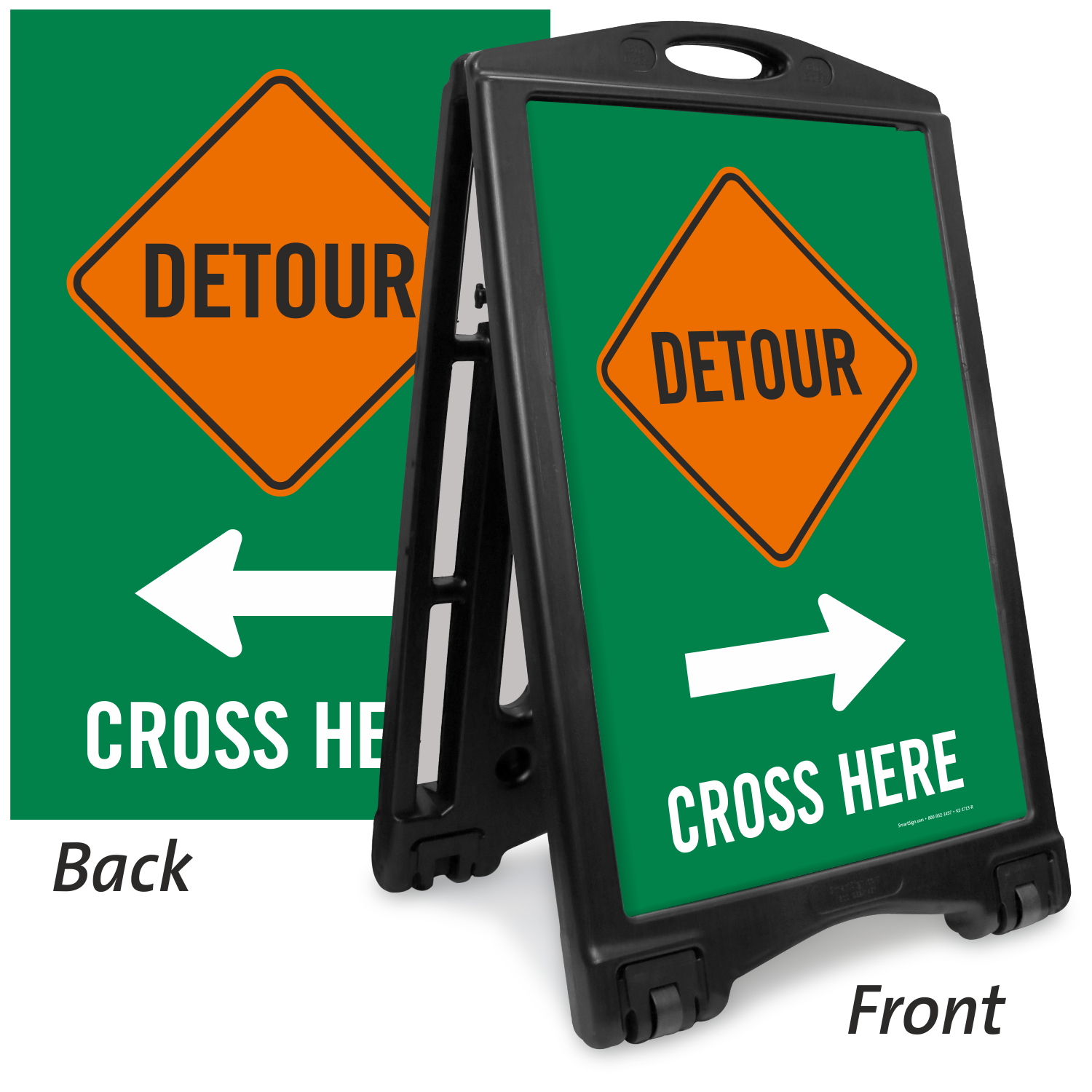 A-Frame Portable Sidewalk Sign: Detour Cross Here with Left/Right Arrow (Front/Back) K-ROLL-1222