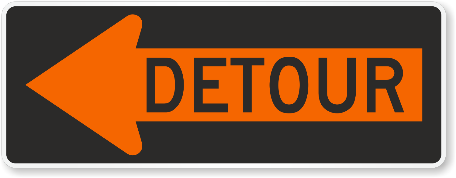 Standard: 01 Each detour shall be adequately marked with standard temporary route signs and destination signs. 02 If used, the Pedestrian/Bicycle Detour sign shall have an arrow pointing in the appropriate direction.