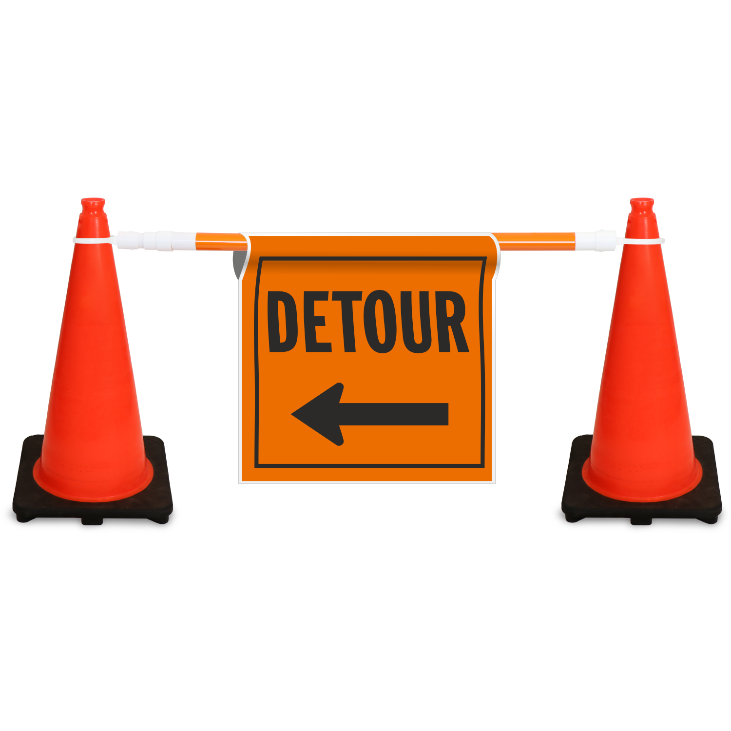 Cone Bar Barricade Sign: Detour With Right Arrow Symbol S2-5697 Learn More...