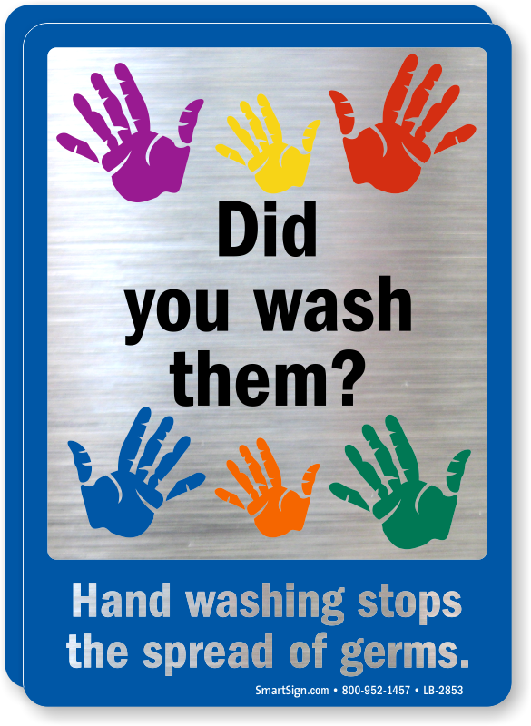 This Wash Hands Mirror Decal is ideal for school bathrooms. Brushed metal surface imparts a professional touch to the decal.