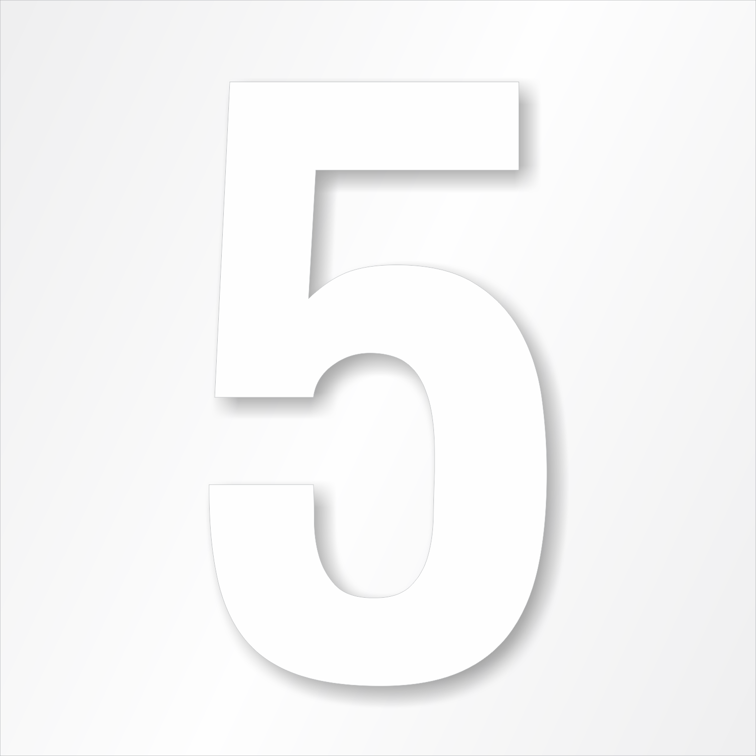 Die-Cut Number: Die-Cut 12 Inch Character Height, White, Number - 5 NL-CO-BA-12-WH-5