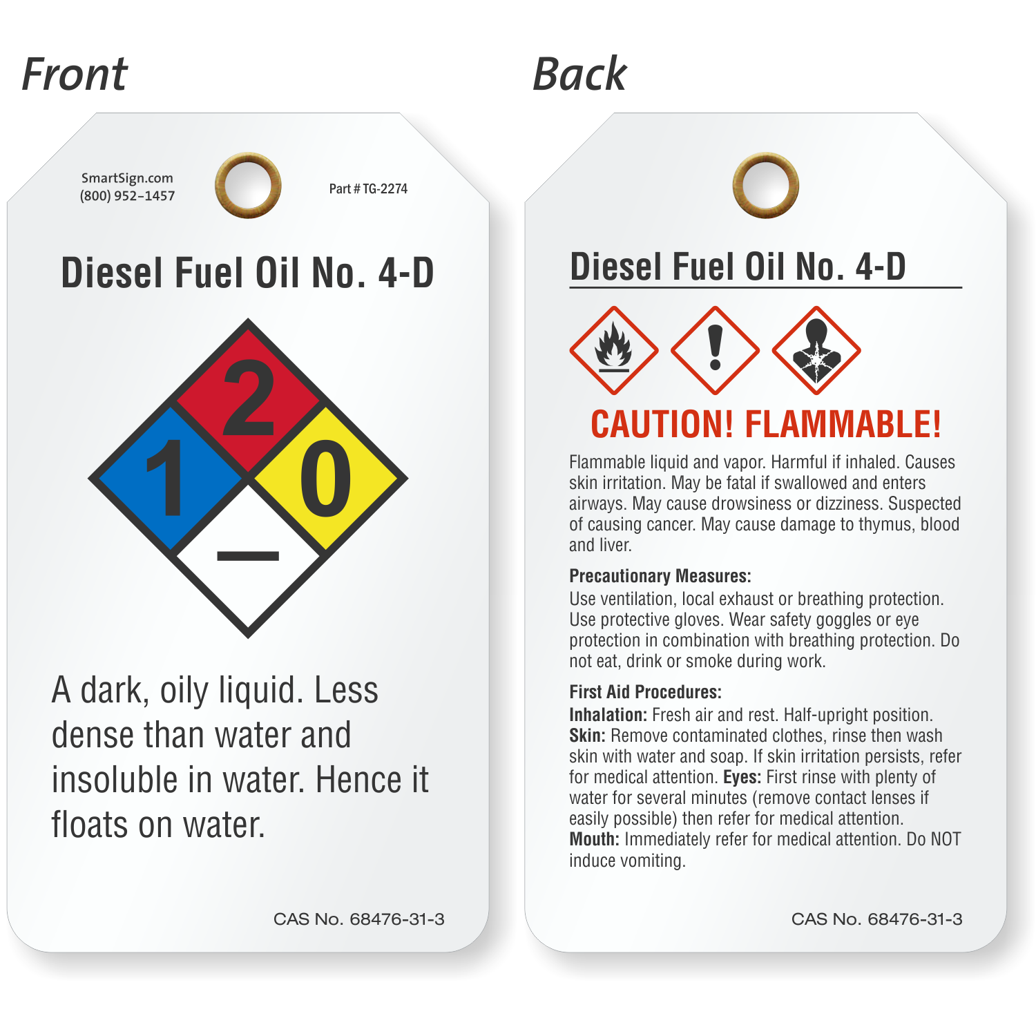 A Diesel Fuel Oil No. 4-D chemical tag will help prevent an avoidable and unnecessary accident. Nothing works better to increase safety than a Diesel Fuel Oil No. 4-D safety tag.