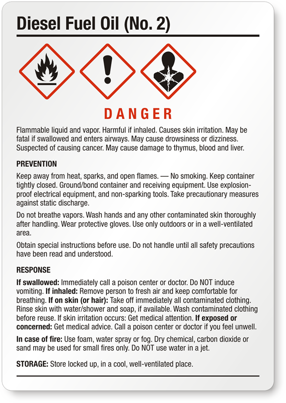 - View more GHS Diesel Fuel labels here.
