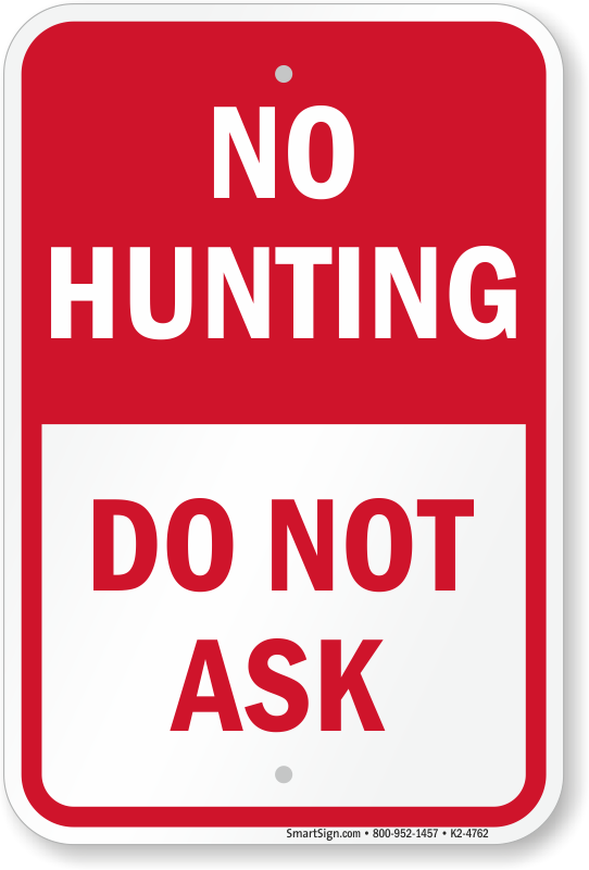 No Hunting Sign: Do Not Ask K2-4762 Learn More...