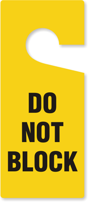 Bright yellow, tear-resistant plastic tag hangs from door knobs - your message is hard to ignore!