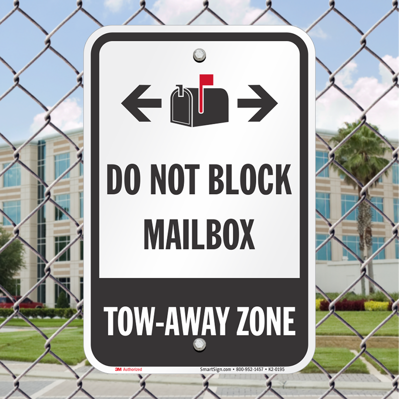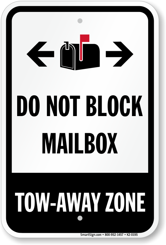 Do Not Block Sign: Do Not Block Mailbox, Tow-Away Zone (with Bidirectional Arrow Symbols) K2-0195 Learn More...
