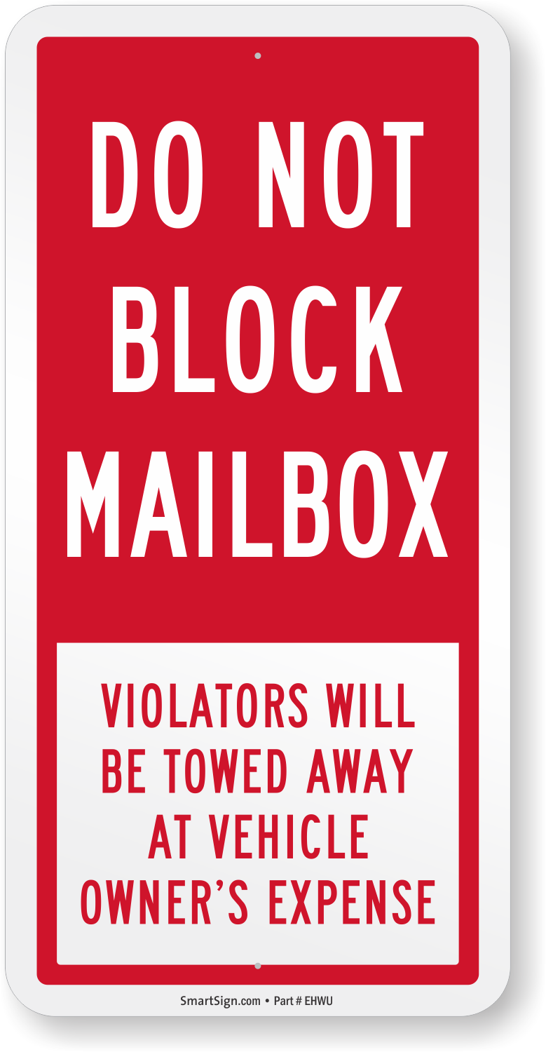 Do Not Block Mailbox Sign: Violators Will Be Towed Away At Vehicle Owner's Expense S2-4331