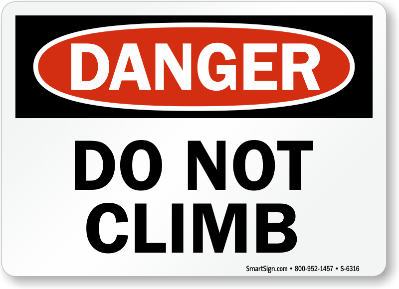 Safety is of utmost importance at all times, use an OSHA Danger Sign and prevent people from climbing on precarious surfaces.