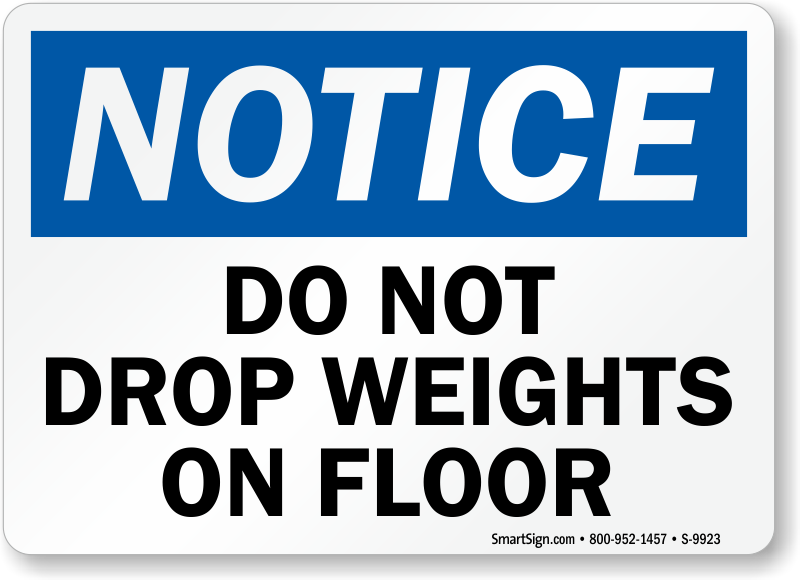 Some people tend to ignore the obvious safety precautions if there isn't a sign, and drop weights on the floor in a gym. Use this notice sign to prevent any damages by giving them no excuse to forget.
