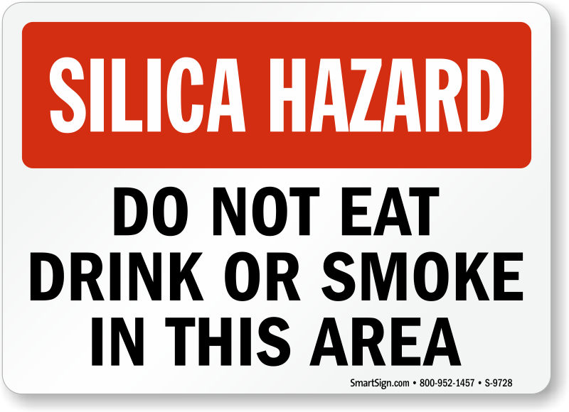 A hazard alert is important! Remind everyone not to eat, drink, or smoke in areas where Silica dust is present.