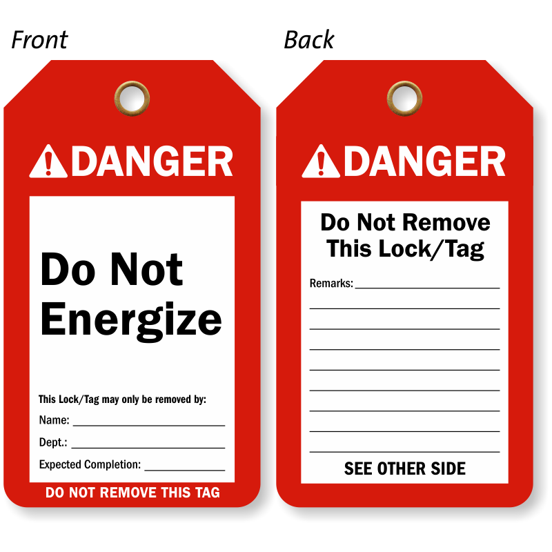 This Do Not Energize Two-sided ANSI Danger Tag clearly warns workers to stay away from hazardous locked out/tagged out equipment and prevent untoward workplace accidents.
