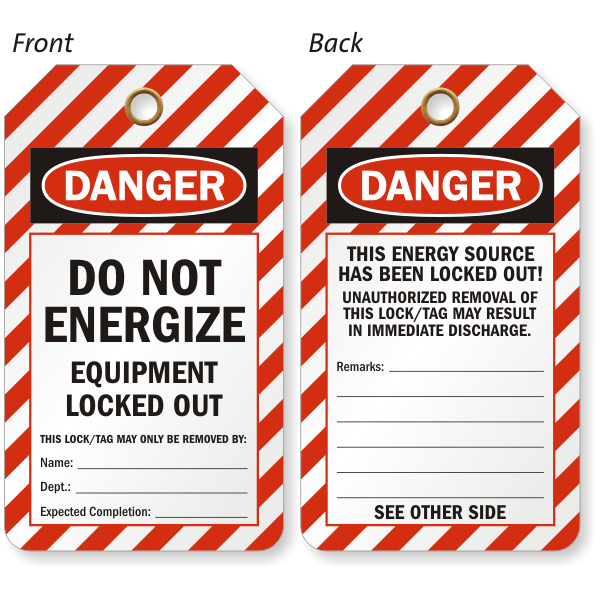 Affix this Danger OSHA Lockout 2-Sided Tag to caution workers against the electrical hazards associated with machinery in your facility.