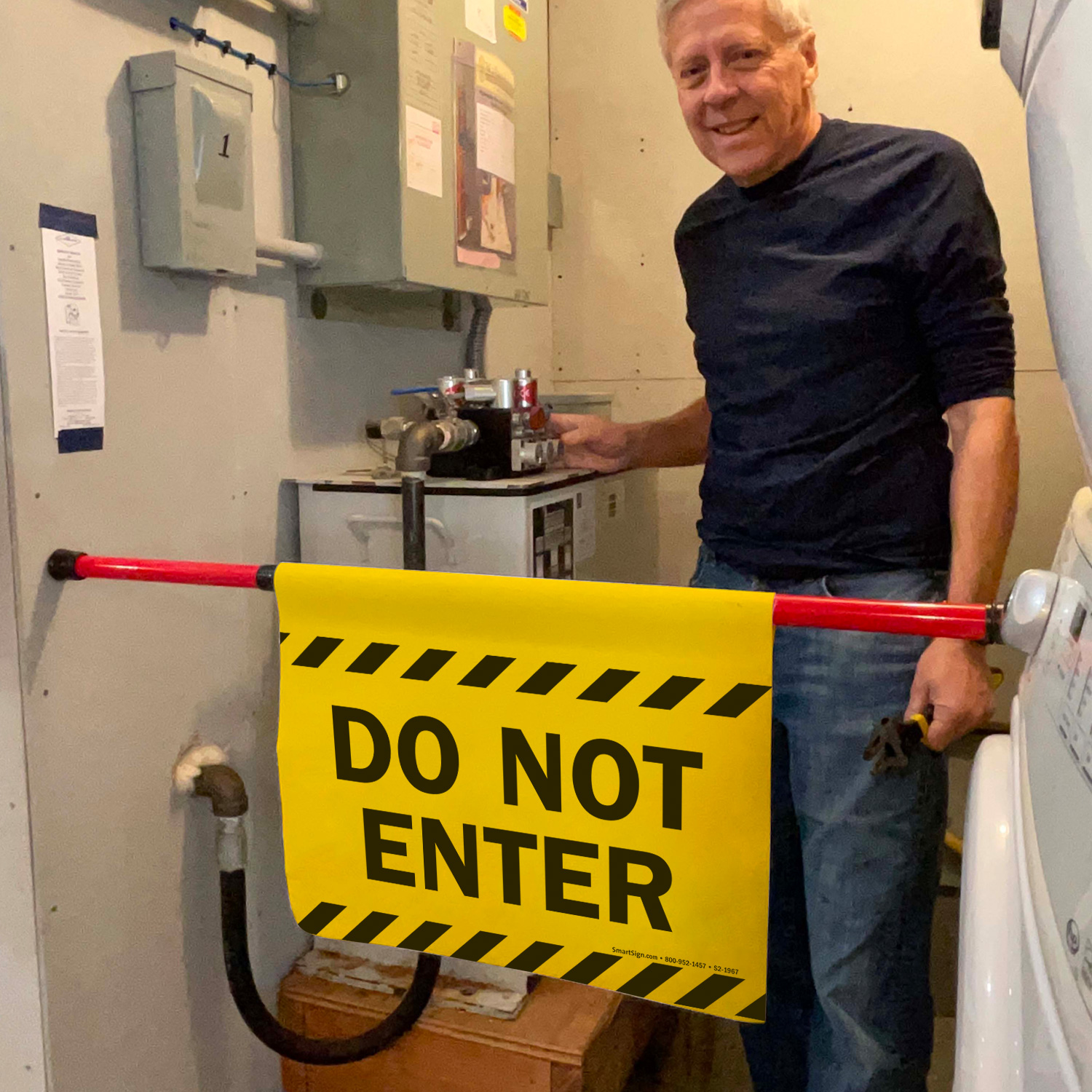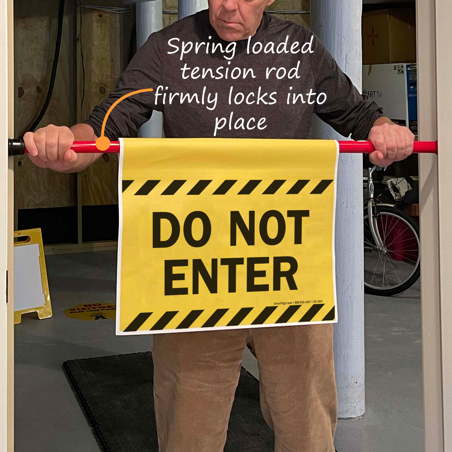 Block and identify doorways to areas where you want to restrict access with this easy-to-install barricade sign.