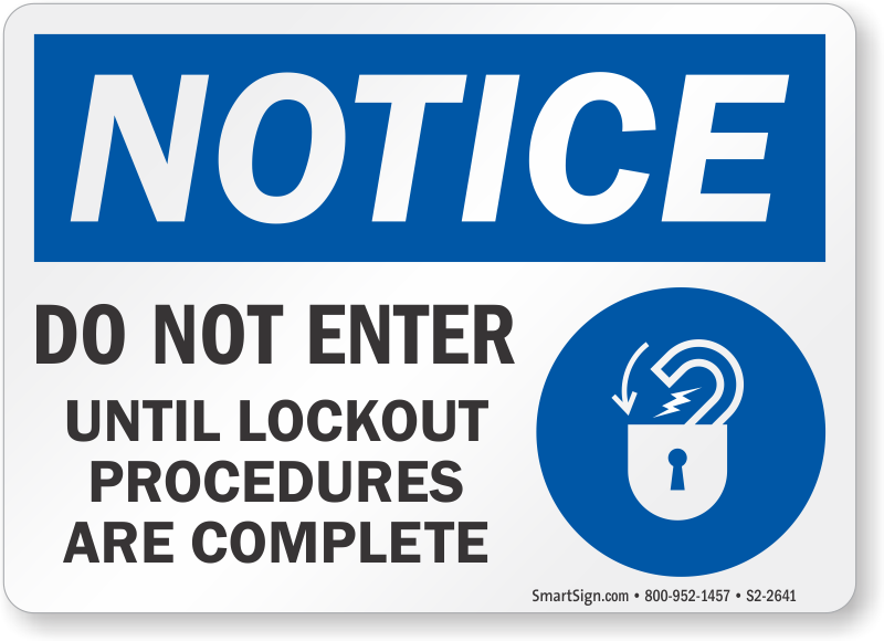 OSHA Notice Sign: Do Not Enter Until Lockout Procedures Are Complete