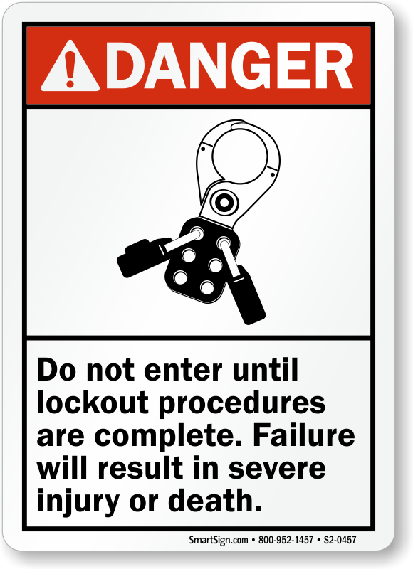 ANSI Danger Sign: Do Not Enter Until Lockout Procedures Are Complete, Failure Will Result In Severe Injury Or Death (With Graphic) S2-0457