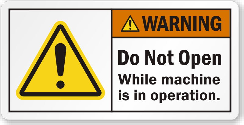 Handy ANSI Warning Label can be placed right on the machine, or lid, or cover to inform of the hazard.