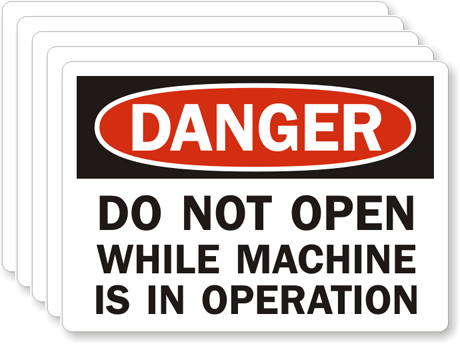 3.5in. x 5in. Laminated Vinyl Labels (Set of 5): OSHA Danger - Do Not Open While Machine Is In Operation L-0067-VS