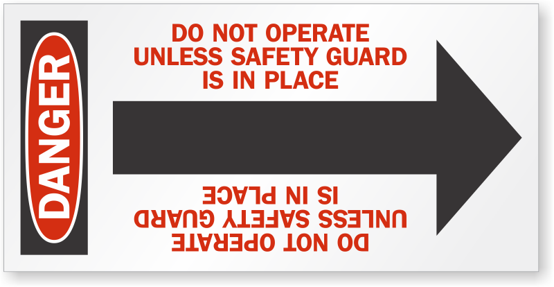 Danger Arrow Label: Do Not Operate Unless Safety Guard Is In Place LB-2482
