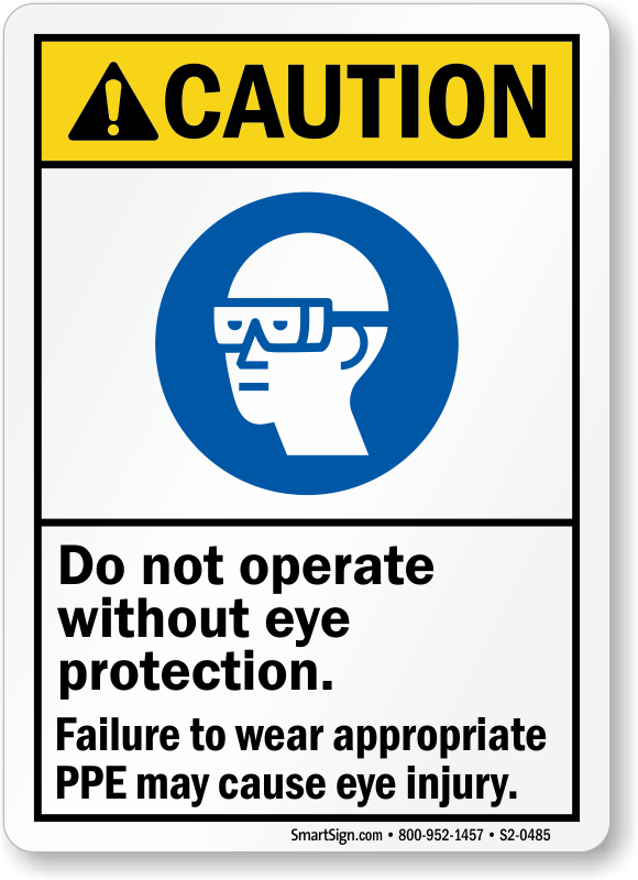 ANSI Caution Sign: Do Not Operate Without Eye Protection, Failure To Wear Appropriate PPE May Cause Eye Injury (With Graphic) S2-0485