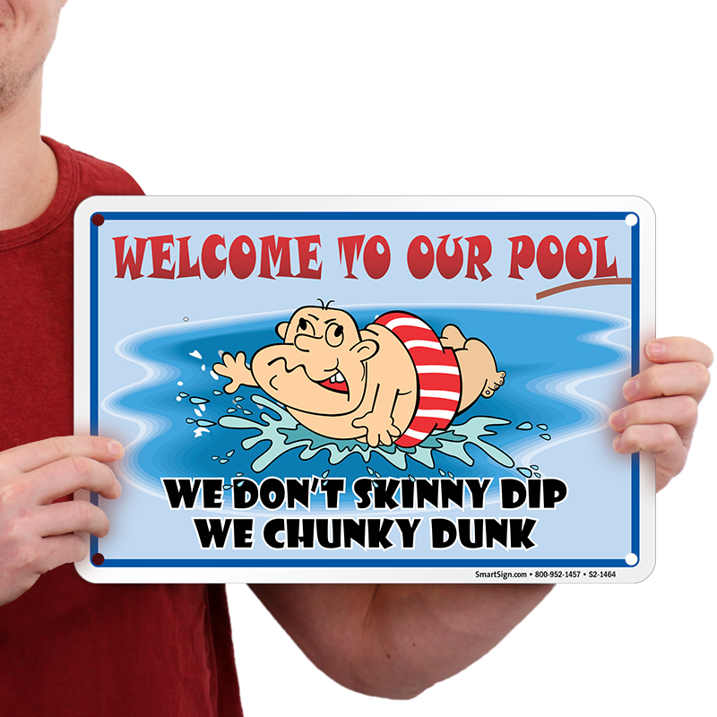 Funny Pool Sign: Welcome to Our Pool, We Do Not Skinny Dip, We Chunky Dunk with Graphic S2-1464