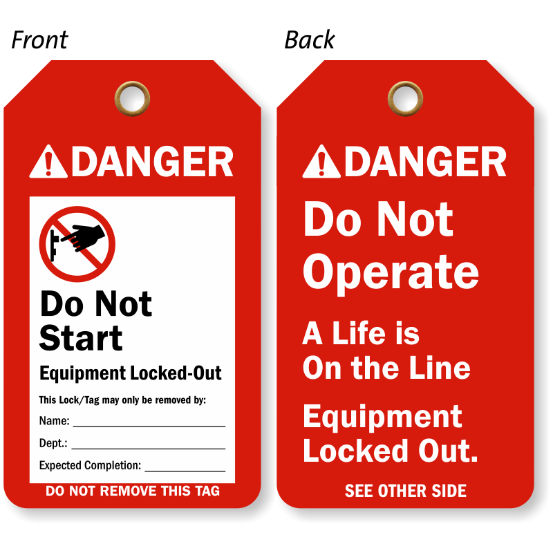 Attach this Do Not Start Tag and prevent fatalities due to accidental use of equipment in your facility.