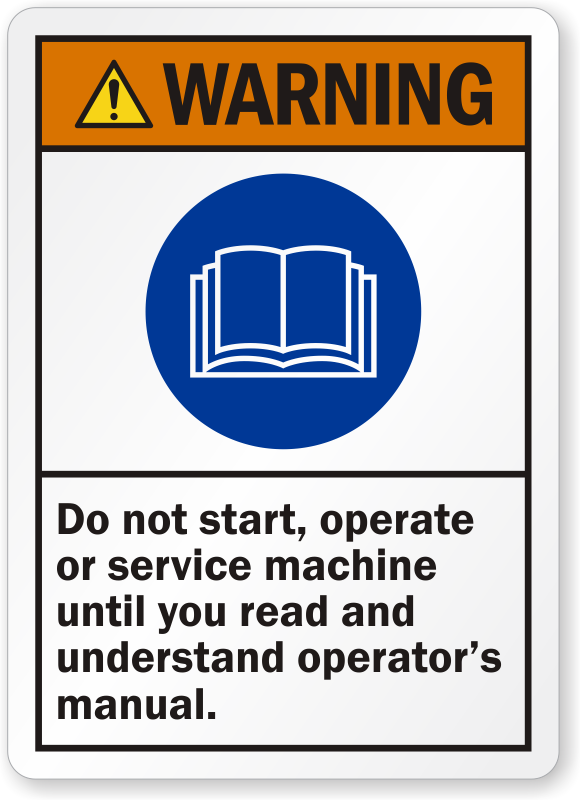 This ANSI label with a symbol of user guide insists on the importance of reading it before operating or servicing a machine. Apply this label to make sure your workers pay heed to reading the manual.