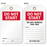 This Double Sided Tag is the first line of defense in preventing accidental start of unsafe equipment.