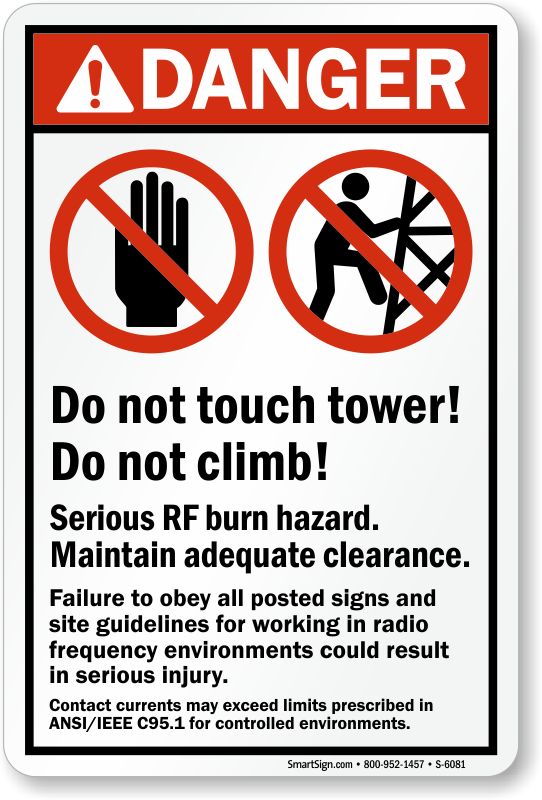 The radio towers are a dangerous, post this ANSI Danger Sign to inform workers to stay off the AM radio tower.