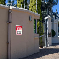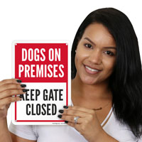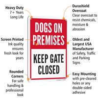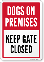Dog Gate Warning Sign: Dogs On Premises Keep Gate Closed S2-5817