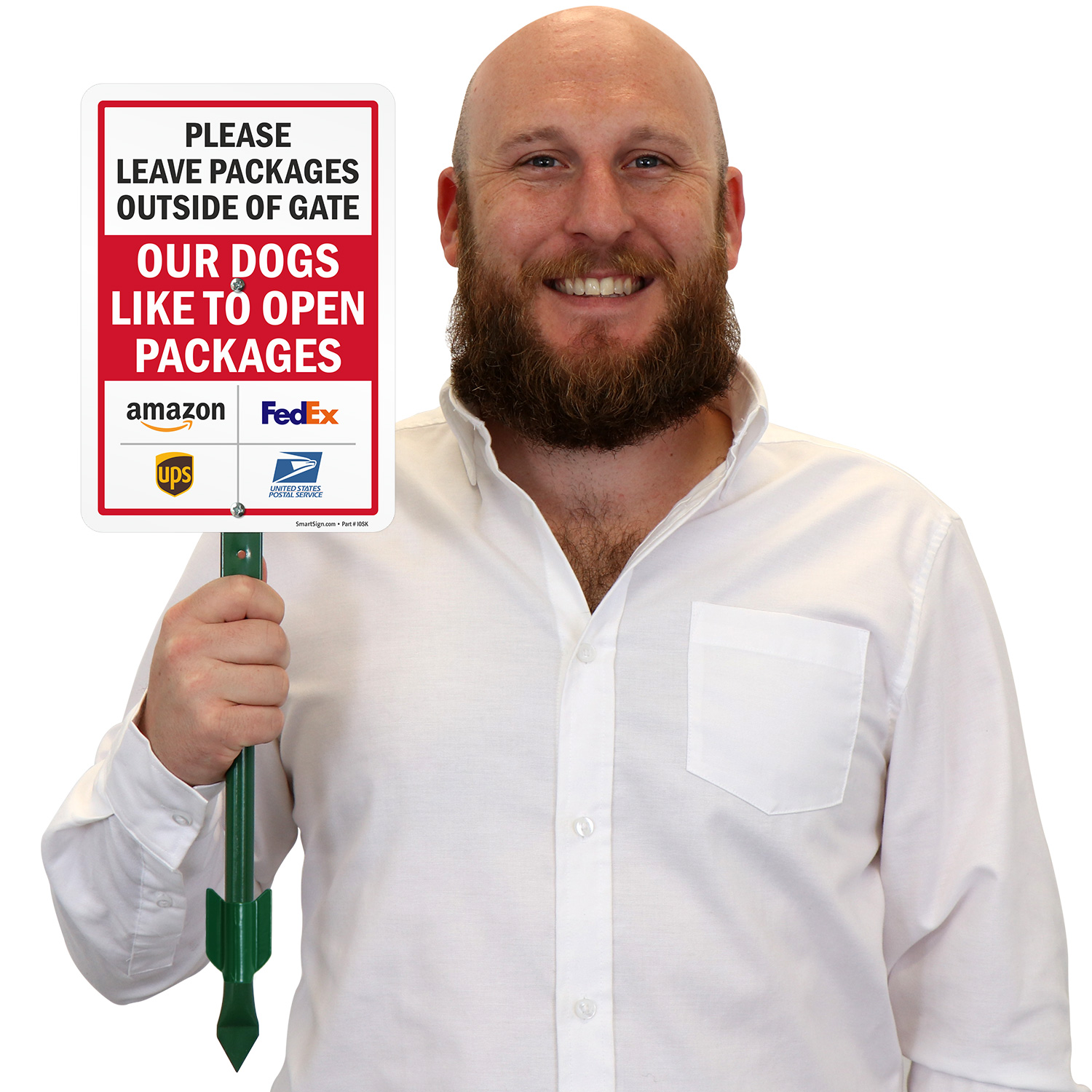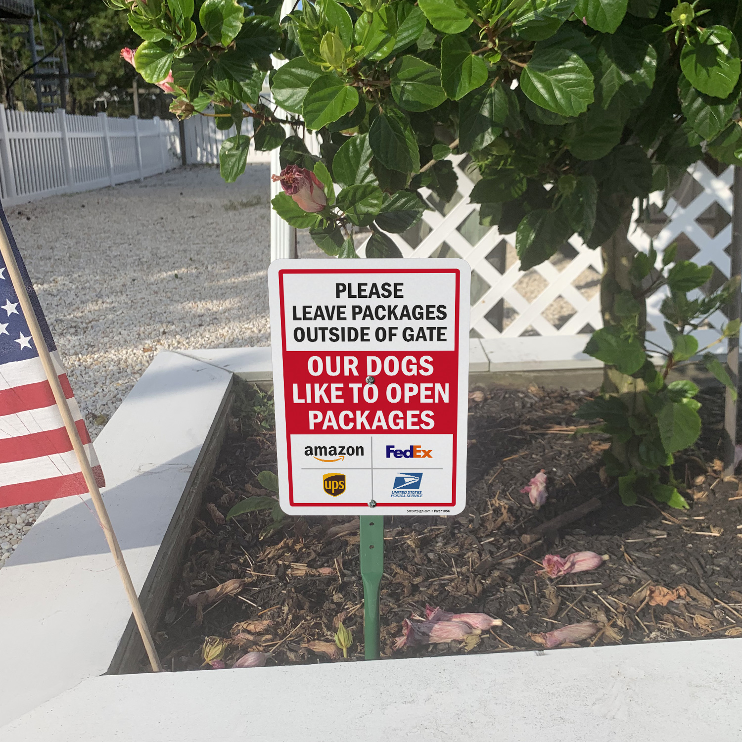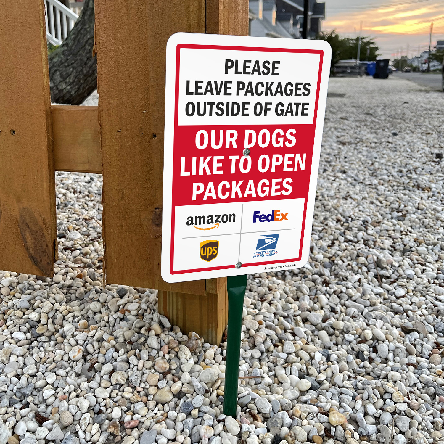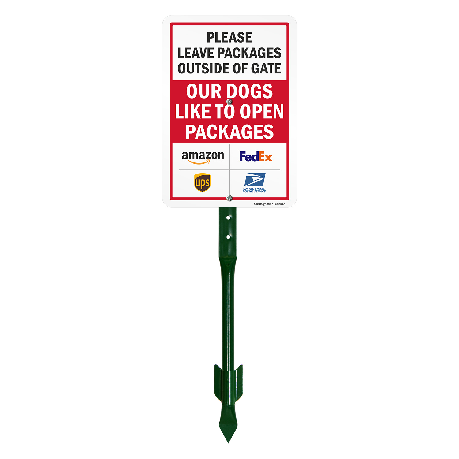 Package Delivery LawnPuppy Sign: Please Leave Packages Outside Of Gate - Our Dogs Like To Open Packages (Amazon, FedEx, UPS, USPS Logos) K2-6811