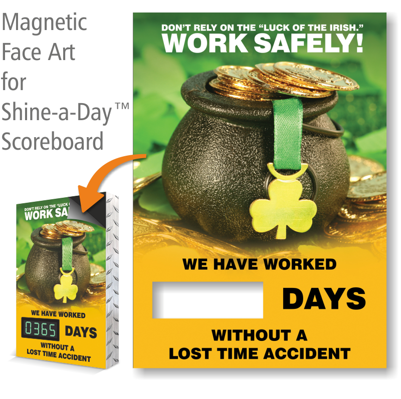 Tell employees they can't escape accidents with sheer luck. Safety is the key requirement no matter what. Innovative design makes this Changeable Magnetic Shine-a-Dayâ„¢ Face hard-to-miss.