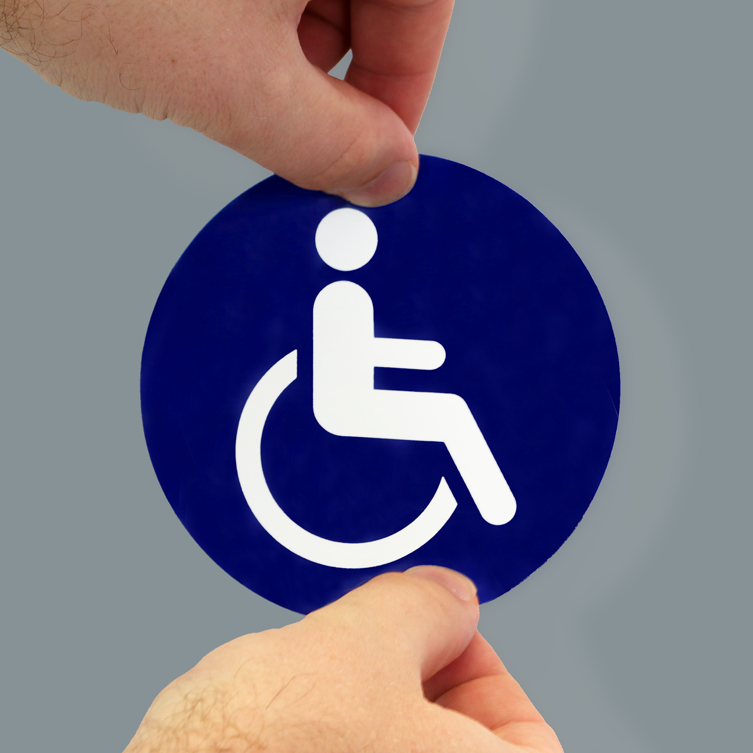 Place a handicapped accessible notice on both sides of a glass door with one simple sign.