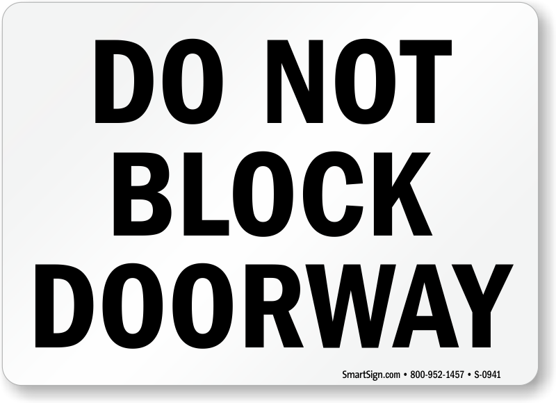 Provide security with this Do Not Block Doorway sign. Give safety a hand - with a sign.