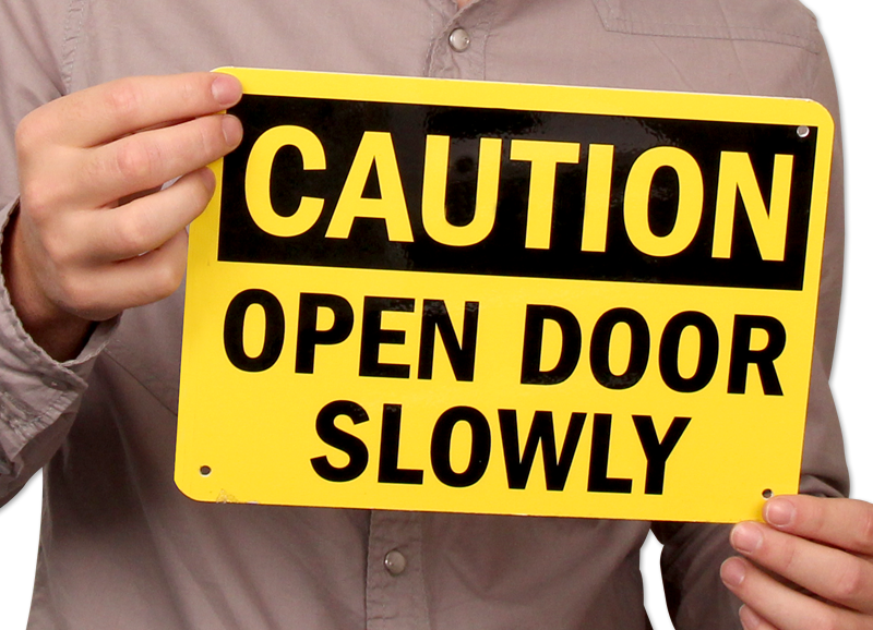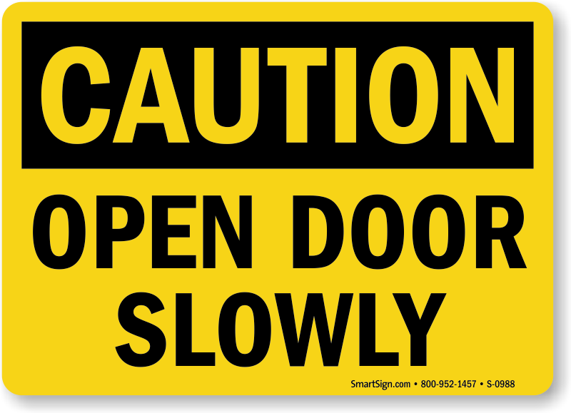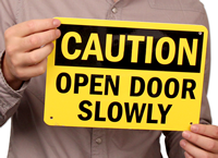 Remind staff and visitors to open doors slowly to avoid the risk of hitting people at the other side of the door. For immediate use, download a free PDF of this design and print it on your inkjet or laser printer. Factory-ordered sign are more durable and can be installed easily using pre-drilled holes.
