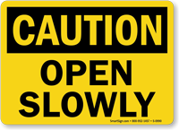 A sign is an effective reminder. Use a "open slowly" sign. Ring the alarm bell in their head so that the real one doesn't get used.