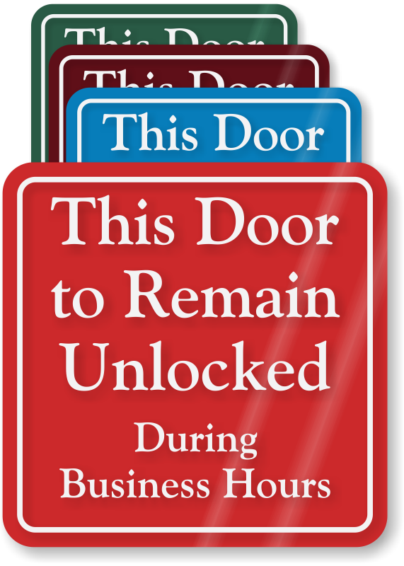 Show yourself as "Open" during business hours by keeping the door unlocked. This ShowCaseâ„¢ Wall Sign is a good reminder for all the employees, visitors, and patrons to keep the door open.